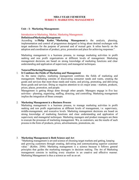 Read Online MARKETING MANAGEMENT NOTES FOR MBA Doc